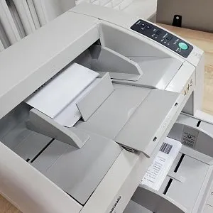 Итак по-порядку. Сперва необходимо отрегулировать подающий и принимающий лоток и выставить ограничители в нужном положении. Размер подогнан и вуаля ! Все работает, Вот такой короткий рассказ, да в общем и писать было бы не о чем, если бы не размер оригинала. Посмотрите видео . Это самое наглядное.