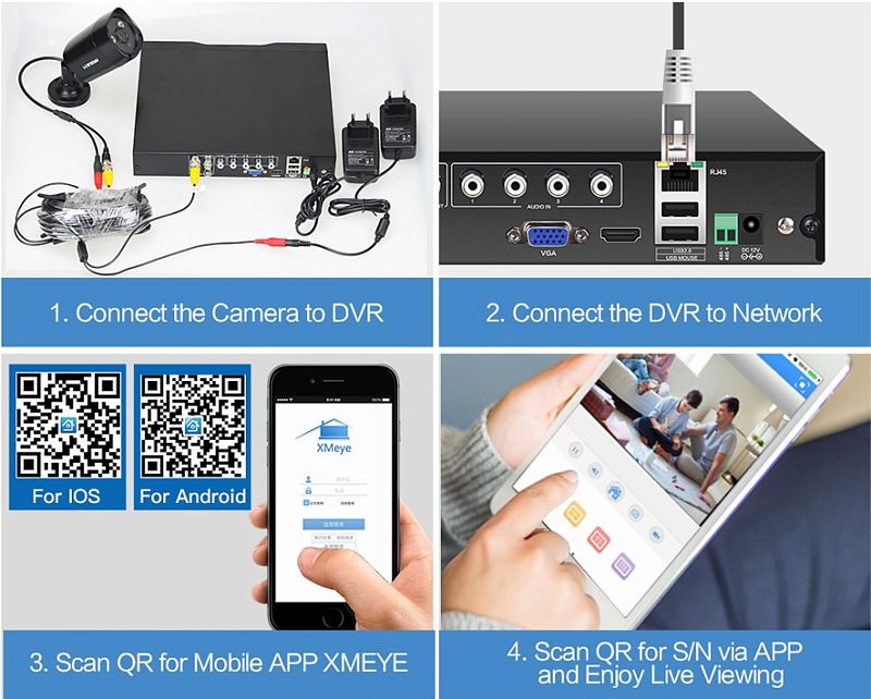 - Четыре миниатюрные купольные HD-CVI видеокамеры с разрешением 1280х720 пикселей
