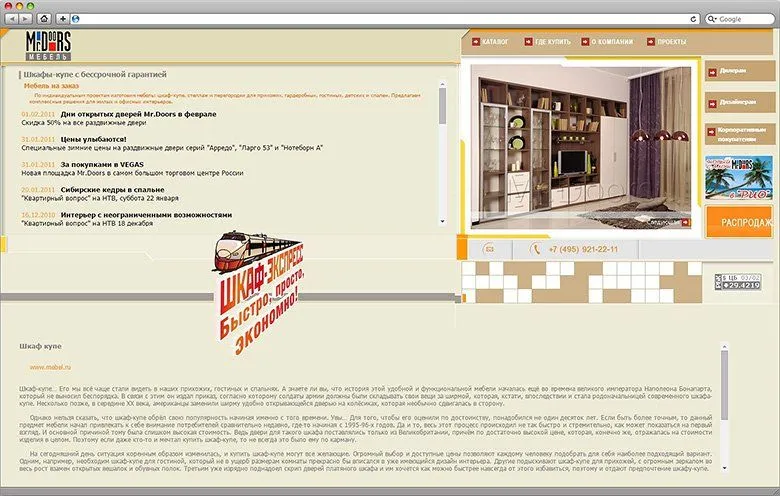 На дворе 2011 год, а официальный сайт лидера рынка корпусной мебели на заказ — Mr.Doors просто полный трэш и угар