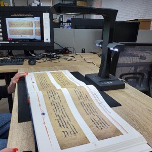 Сканирование сшитых оригиналов больших или нестандартных форматов всегда проблема . Вернее это не проблема в принципе, задача отсканировать быстро . Для решения конкретной задачи мы решили использовать сканер CZUR ET18 PRO . Для ускорения процесса вначале сканировались четные страницы, затем нечетные, иначе оригинал пришлось бы двигать для скана каждой страницы.