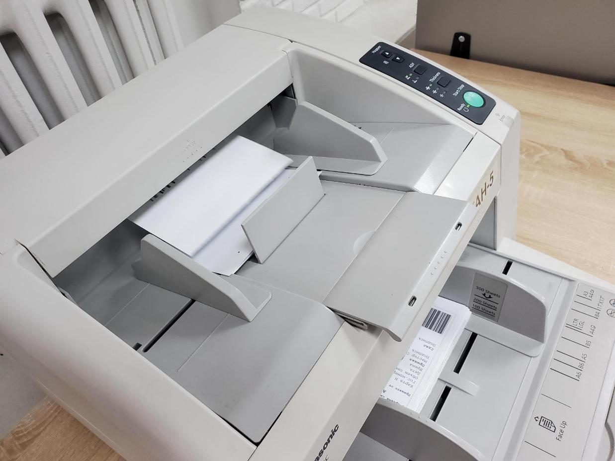 Итак по-порядку. Сперва необходимо отрегулировать подающий и принимающий лоток и выставить ограничители в нужном положении. Размер подогнан и вуаля ! Все работает, Вот такой короткий рассказ, да в общем и писать было бы не о чем, если бы не размер оригинала. Посмотрите видео . Это самое наглядное.